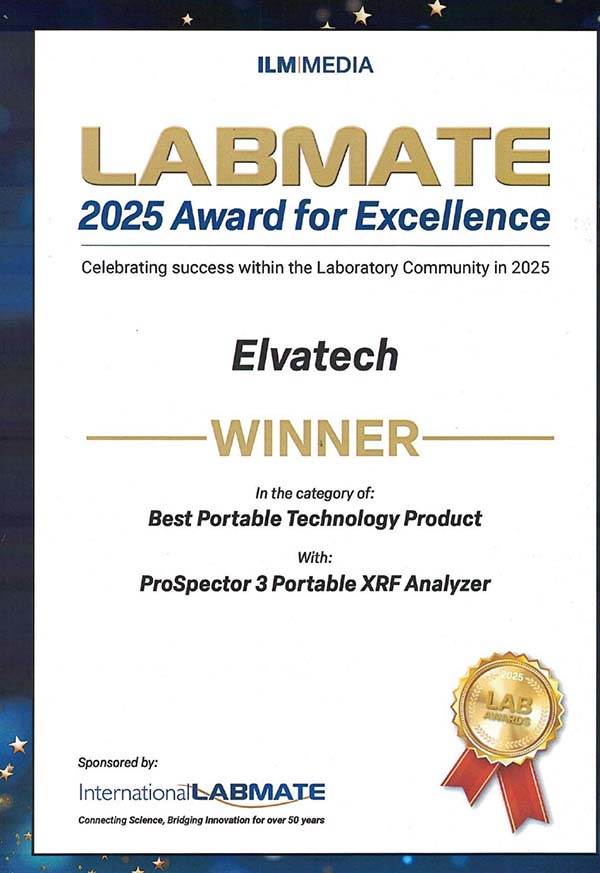 近日,创想仪器代理的Elvatech旗下优质产品,ProSpector 3便携X射线荧光分析仪,凭借出色性能与创新科技,在众多竞争者中脱颖而出,荣获由International LABMATE赞助的LABMATE2025 Award for Excellence“Best Portable Technology Product”类别殊荣。这一国际认可不仅彰显了ProSpector 3在便携式检测设备领域的地位,更是对Elvatech公司深厚技术底蕴与创新实力的权威肯定。